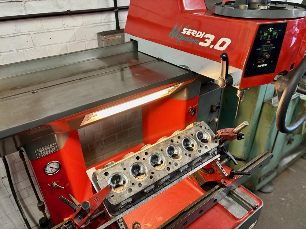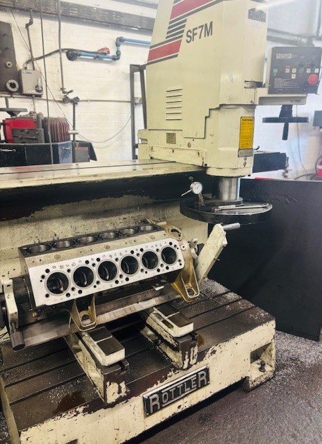 • Cylinder head re-facing. This is done on a Rottler machine which has adjustable levelling enabling a cylinder head to be set up very quickly. All re-facing uses a diamond tool bit with which there is zero distortion.